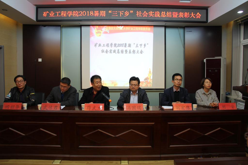 2018年10月19日晚,永利集团3044欢迎光临暑期“三下乡”社会实践总结暨表彰大会在虎峪校区采矿楼学术厅顺利举行。学院党政领导薛武杰、冯国瑞、武佐君出席;院团学工作负责人刘宏伟、田韶华、刘安、陈保宇以及65名实践队员代表参加了此次会议。武佐君副书记主持会议。
