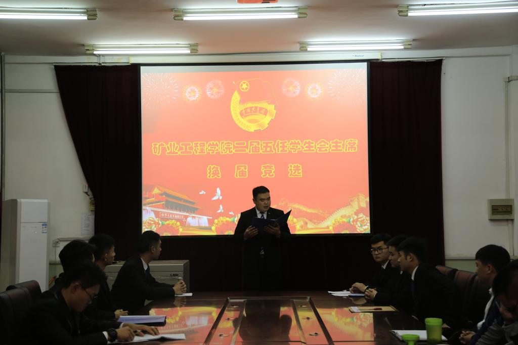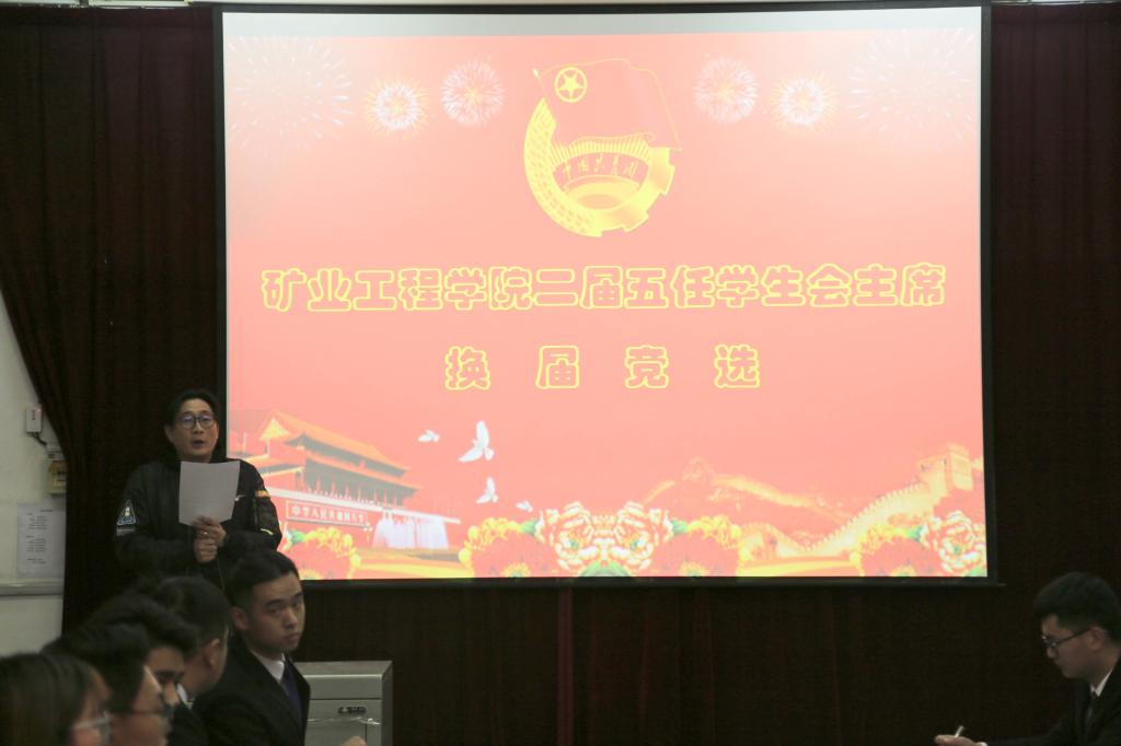 选举大会应到39人,实到39人,符合大会选举规定。会议通过了选举办法和监票人、计票人名单。二届五任学生会主席采用报名、资格审查、竞选方式进行。竞选人潘泽民、周瑞、赵星博、袁磊按照抽签顺序依次进行竞选演讲,表述自己的竞选职务、竞选优势以及工作设想。武佐君副书记代表学院党委对以上同学进行了现场提问答辩。