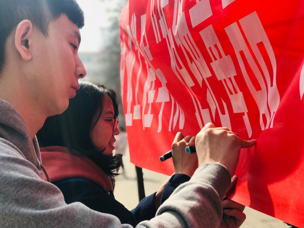 3月4日中午,由矿业学院学生会面向全校学生组织的禁毒宣传活动在虎峪校区碧园餐厅小广场火热进行。精心印制的宣传单很快被同学们领取,往来同学纷纷在宣传条幅上签名言志,学院老师的参与将活动引向了高潮。