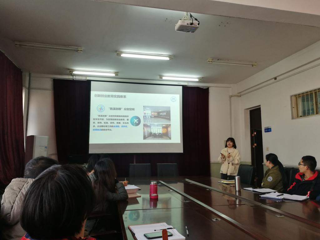 现代科技学院创新创业中心主任、《创业基础》课教研室主任杨婷从创新创业育人体系构建、文化氛围营造、赛事活动组织三个方面切入,详细介绍了创新创业教育在人才培养中的重要位置、在育人体系中的积极作用、在竞赛活动中的突出效果,特别是针对创新创业类大赛的组织发动、参赛指导以案例形式做了专项讲解,并于学院辅导员进行了广泛交流。