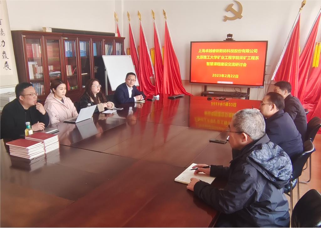 2022年2月至4月永利集团官网采矿工程系与上海卓越睿新数码科技股份有限公司开展了为期近3个月的智慧课程建设、交流与研讨活动,2023年4月26日下午,双方对智慧课程建设深入地进行了交流与探讨,活动由系主任李建忠主持。