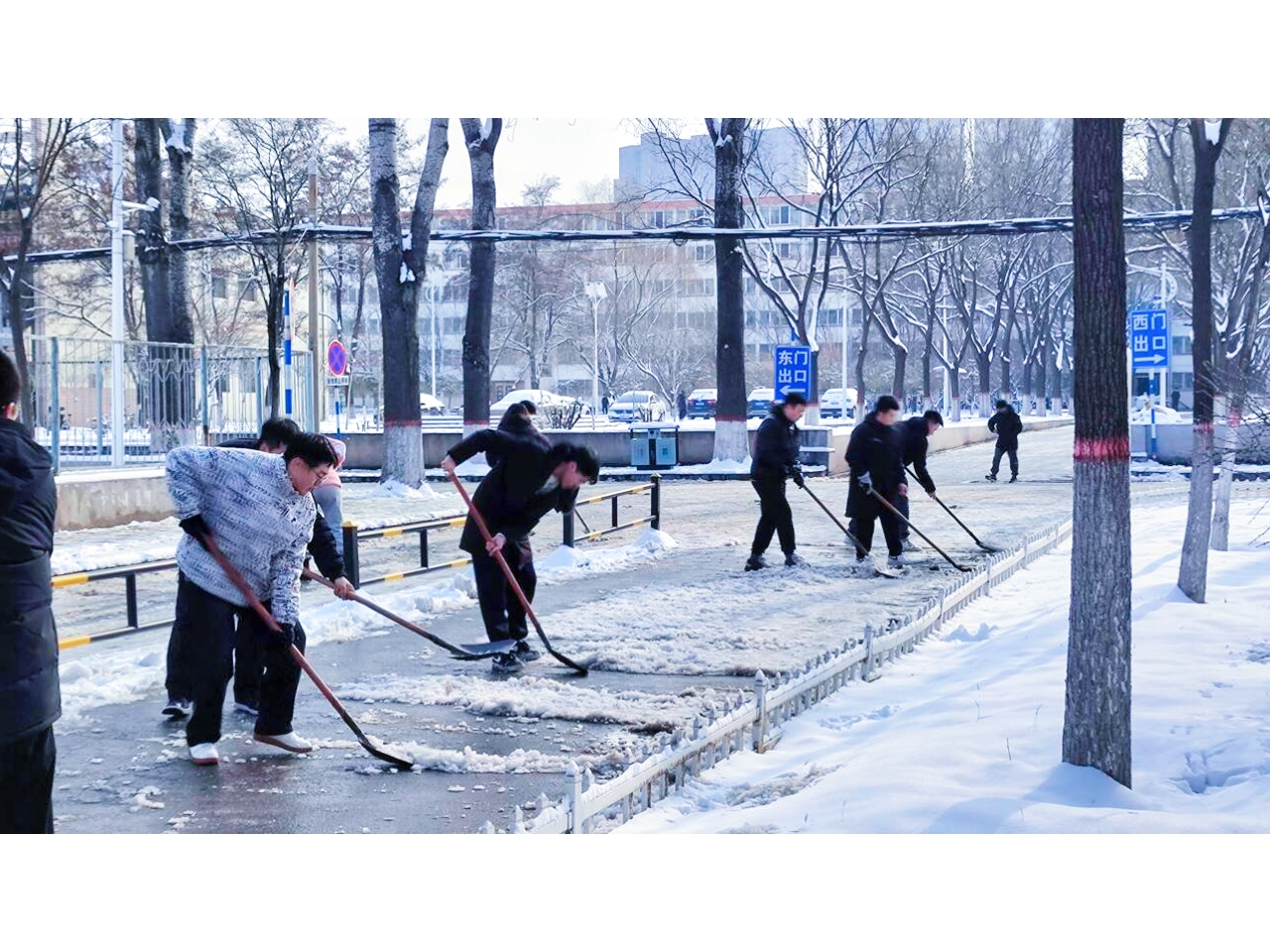 全体人员于12点25分在致明楼前集合,领取清扫工具。为保证快速高效地完成本次扫雪行动,同学们针对性地分组分段,团结协作,你铲我扫,团结明晰。秉持无惧严寒的理想信念,坚定奋发向前的斗志勇气,在出力流汗的体力劳动中形成积极的劳动精神、养成良好的劳动习惯、掌握基本的劳动技能。